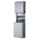 | Description | Bobrick B-3961 recessed convertible paper towel dispenser with waste receptacle in a satin finish stainless steel. Touch free pull towel mechanism dispenses 12" length per pull of universal of 8" wide and up to 8" diameter.. Removable leak-proof waste container has a 12 gal. capacity. Rough wall opening 15-7/8"w x 54-5/8"ht x 4" minimum depth. |