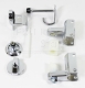 | Description | The Global Partition Complete Standard Door Kit is the manufactures hardware package. They are constructed of Zamac die cast metal that is then chrome plated and polished. Included in the kit is a top and bottom hinge, concealed latch, keeper bumper, pintle, cam coat hook and bumper, all of the hinge pins and the security screws. The manufacture part number is 40-8513500. This was used up until October 2021. |